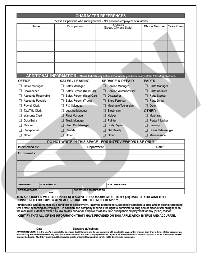 This form has been designed to strictly comply with State and Federal Fair Employment Practice Laws prohibiting employment discrimination. This form contains 4 pages and is folded at a convenient 8½” x 11″ for easy filing.