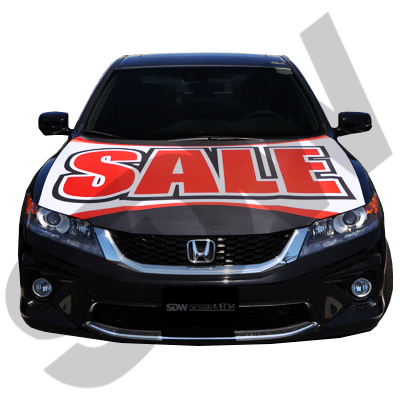 Add instant impact to your front line or featured vehicles in seconds. The fitted stretch polyester fabric wraps around the hood of the vehicle with ease. Simply open the vehicle’s hood to apply; the elastic edge will secure the Flag Hoodie. Once vehicle hood is closed, the Flag Hoodie™ cannot be removed. Great for test drives! Soft polyester material guaranteed not to scratch the paint of the vehicle. Fits most Cars and Trucks!