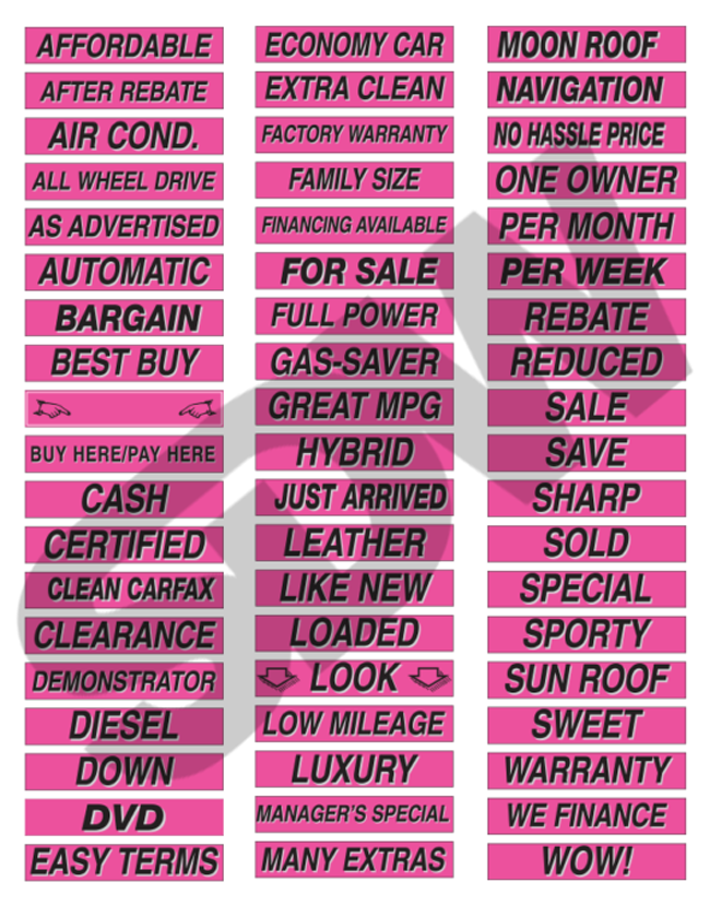 Slogans: EZ 15″ Pink & Black Windshield Slogans (12pk) #16-142