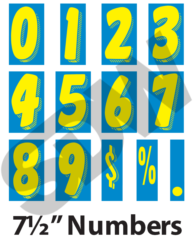 Auto Dealer Blue & Yellow, 3-D shaded design, adhesive windshield number. An inexpensive yet highly effective sales tool to advertise a year model or price. 7-1/2″ x 4″. Made of durable, waterproof vinyl. Removable adhesive allows easy, clean removal.